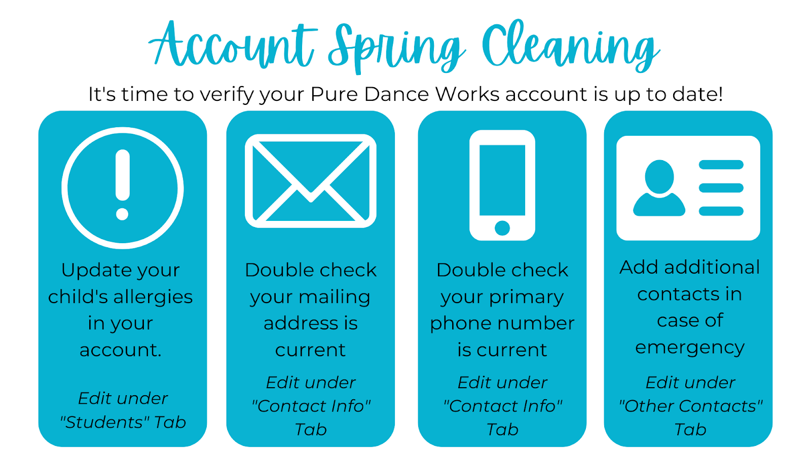 Please take 2 minutes to double check your account information today. Thanks!